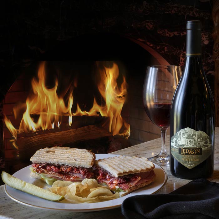 Oven roasted turkey breast, honey baked ham, Genoa salami, sliced white cheddar, with mayo, Dijon mustard, tomato, onion and pepperoncinis on sliced sourdough bread. It can be grilled to perfection upon request. We offer a gluten-free option upon request. This sandwich pairs well with Zinfandel.